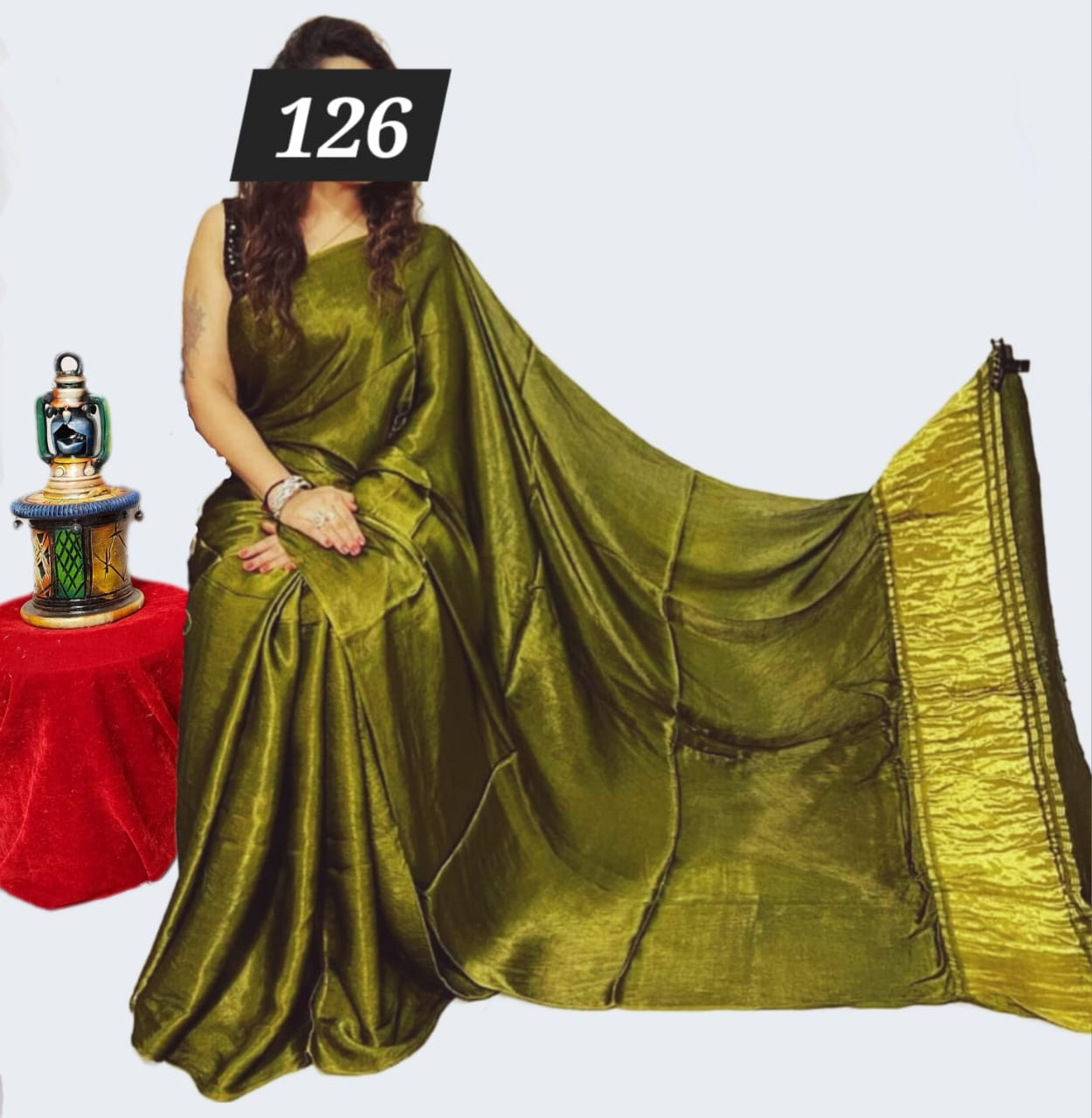 This Olive Green Modal Silk Plain Dyed Saree is a masterpiece of minimalist elegance, crafted from premium Modal Silk known for its luxurious softness, high breathability, and eco-friendly nature. The saree features a deep, sophisticated Olive Green earth tone achieved through a high-quality solid dyeing process that highlights the fabric's natural, subtle sheen and silky luster. Its design is intentionally plain and understated, focusing on the graceful, fluid drape of the material that beautifully contours the body to create a sleek silhouette. Perfectly blending traditional comfort with modern chic, this saree is an ideal choice for formal office wear, sophisticated evening gatherings, or daytime festivities, offering a regal look that is both timeless and incredibly comfortable for all-day wear.