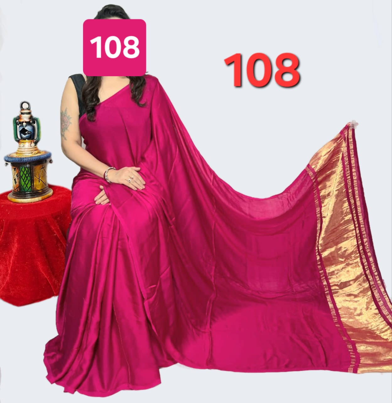Experience the perfect blend of modern glamour and traditional grace with this Hot Pink Metallic Crushed Modal Silk Saree, a stunning masterpiece designed for the contemporary woman. Crafted from premium Modal Silk, this saree offers a luxurious, feather-light feel and exceptional breathability, ensuring you remain comfortable throughout any event. The fabric features a unique Metallic Micro-Pleated "Crushed" texture that creates a captivating play of light and shadow, giving the solid-dyed pink hue a radiant, shimmering finish. Enhancing its regal appeal is a wide, contrasting Gold Shimmer Tissue border that adds a sophisticated weight and high-fashion edge to the fluid drape. Whether it is a cocktail party, a festive celebration, or a grand wedding reception, this Plain Dyed Shimmer Saree ensures a slender silhouette and a bold, unforgettable presence.